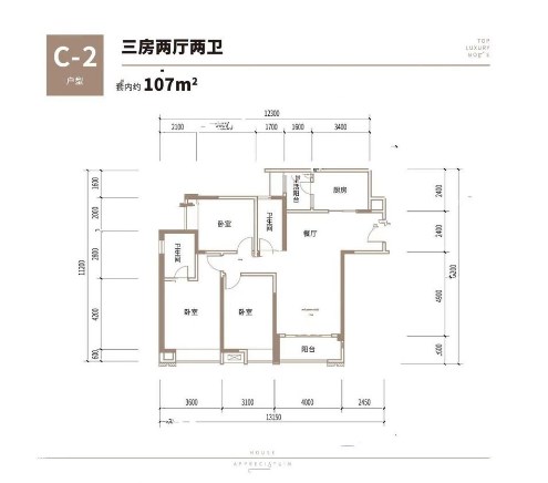 C2,户型居室:【3室2厅1厨2卫】,建筑面积:【107平方米】