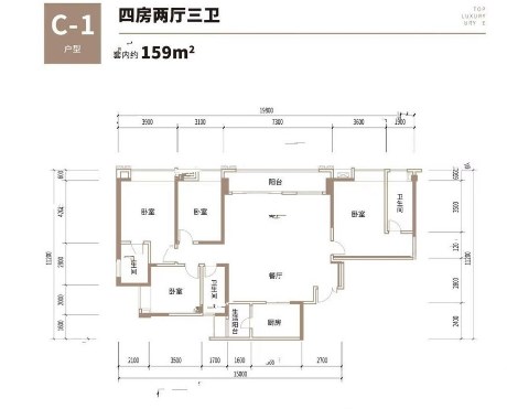 C1,户型居室:【4室2厅1厨3卫】,建筑面积:【159平方米】