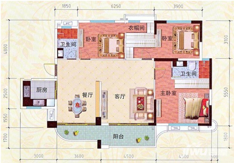 3,户型居室:【3室2厅1厨2卫】,建筑面积:【137平方米】