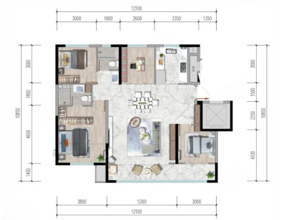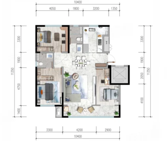 3室2厅2厨1卫 建面106m²