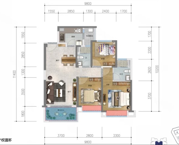 3室2厅2厨1卫 建面103m²