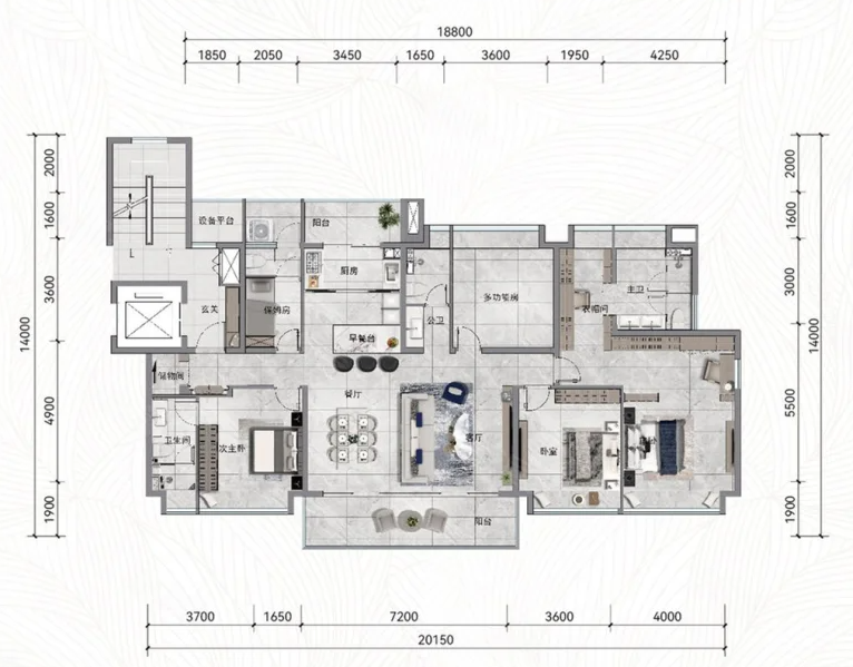 4室2厅4厨1卫 建面151m²