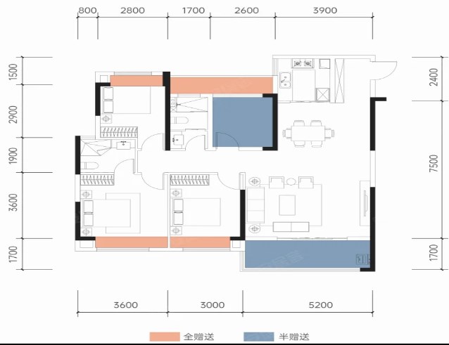 98,户型居室:【3室2厅1厨2卫】,建筑面积:【98平方米】