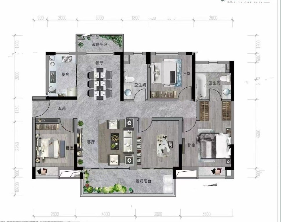 3室2厅2厨1卫 建面105m²