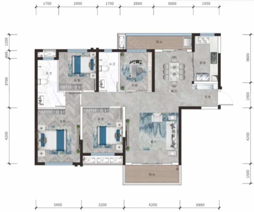 4室2厅2厨1卫 建面143m²