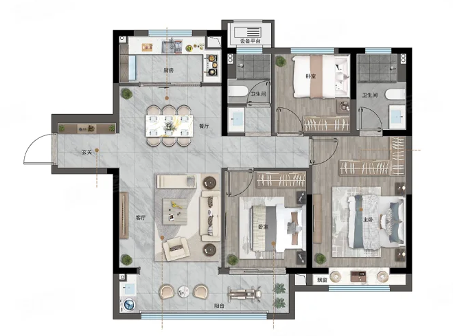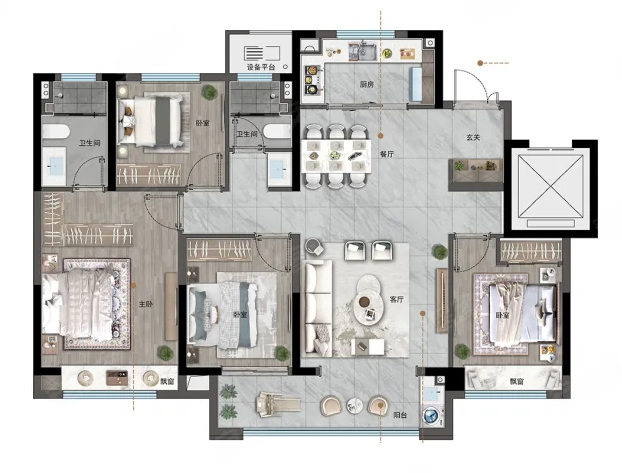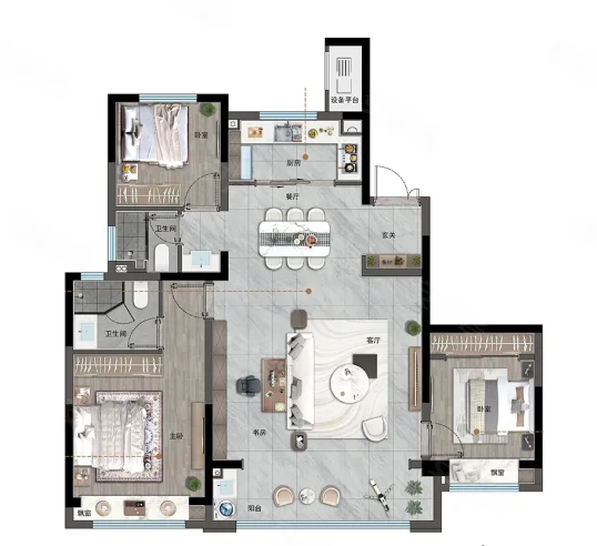 3室2厅2厨1卫 建面117m²