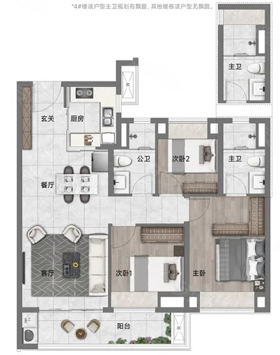 4室2厅2厨1卫 建面126m²