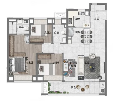3室2厅2厨1卫 建面112m²