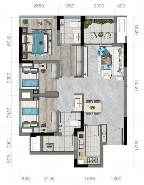 77,户型居室:【3室2厅1厨2卫】,建筑面积:【77平方米】
