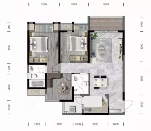 99,户型居室:【3室2厅1厨2卫】,建筑面积:【99平方米】