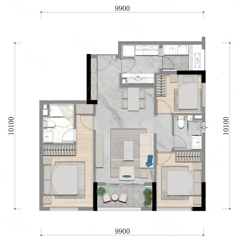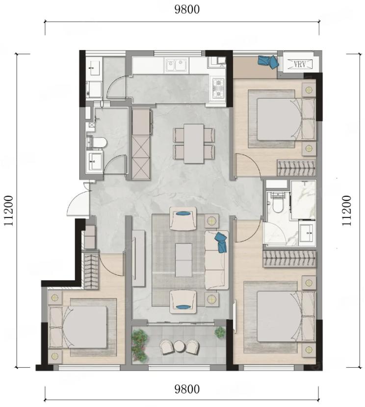 98,户型居室:【3室2厅1厨2卫】,建筑面积:【98平方米】