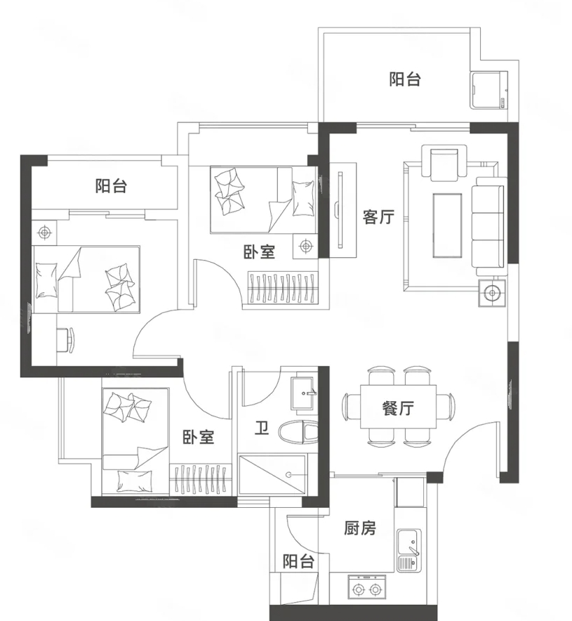3室2厅1厨1卫 建面81m²