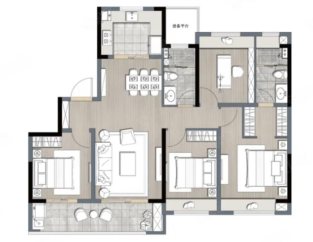3室2厅2厨1卫 建面122m²