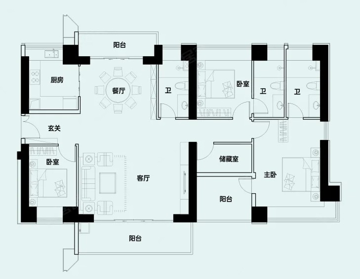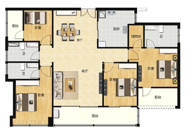 160,户型居室:【4室2厅1厨3卫】,建筑面积:【160平方米】
