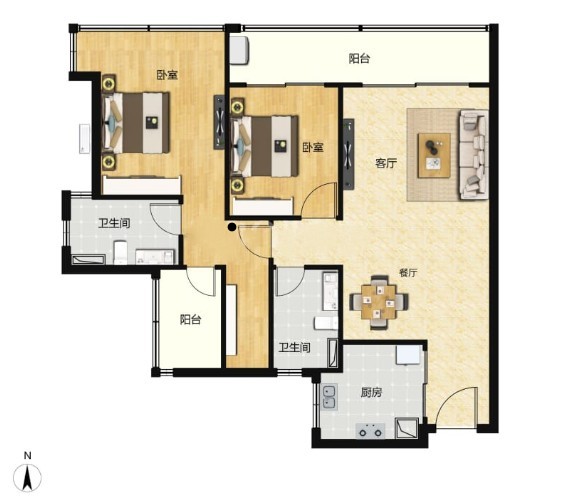109,户型居室:【2室1厅1厨2卫】,建筑面积:【109平方米】