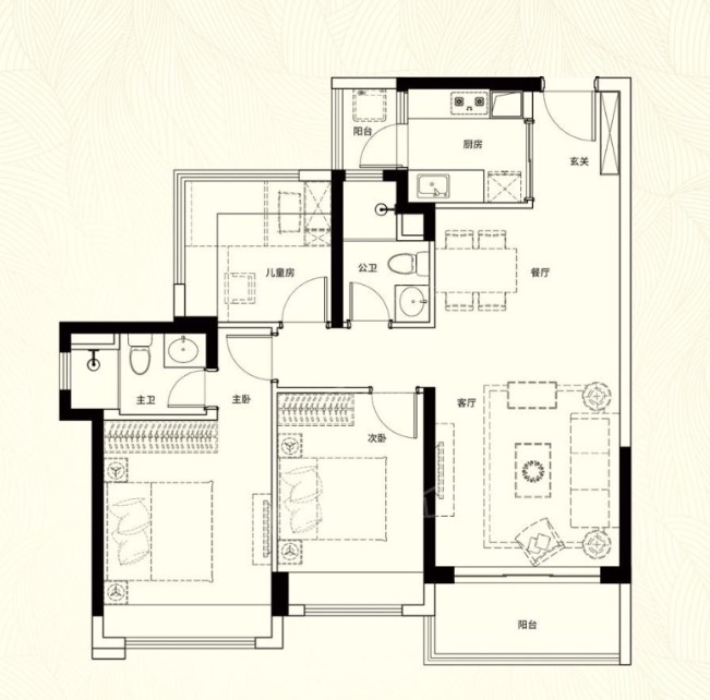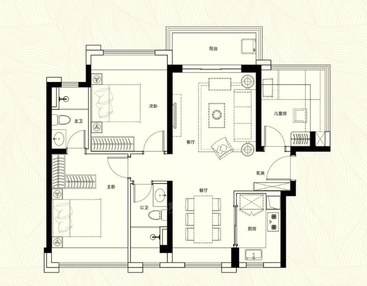 2,户型居室:【3室2厅1厨2卫】,建筑面积:【96平方米】