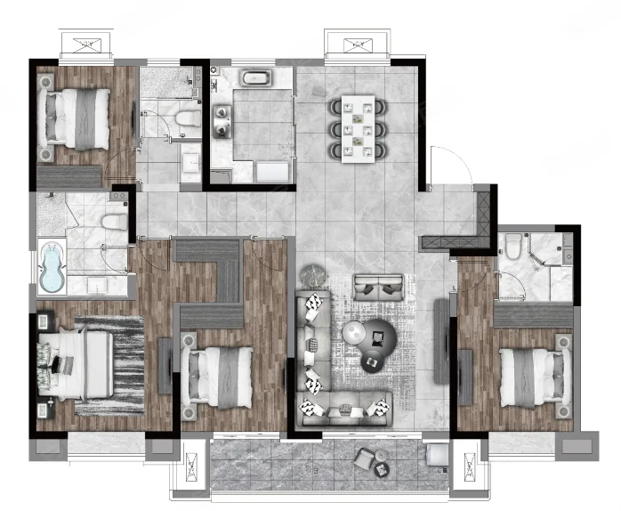 4室2厅3厨1卫 建面179m²