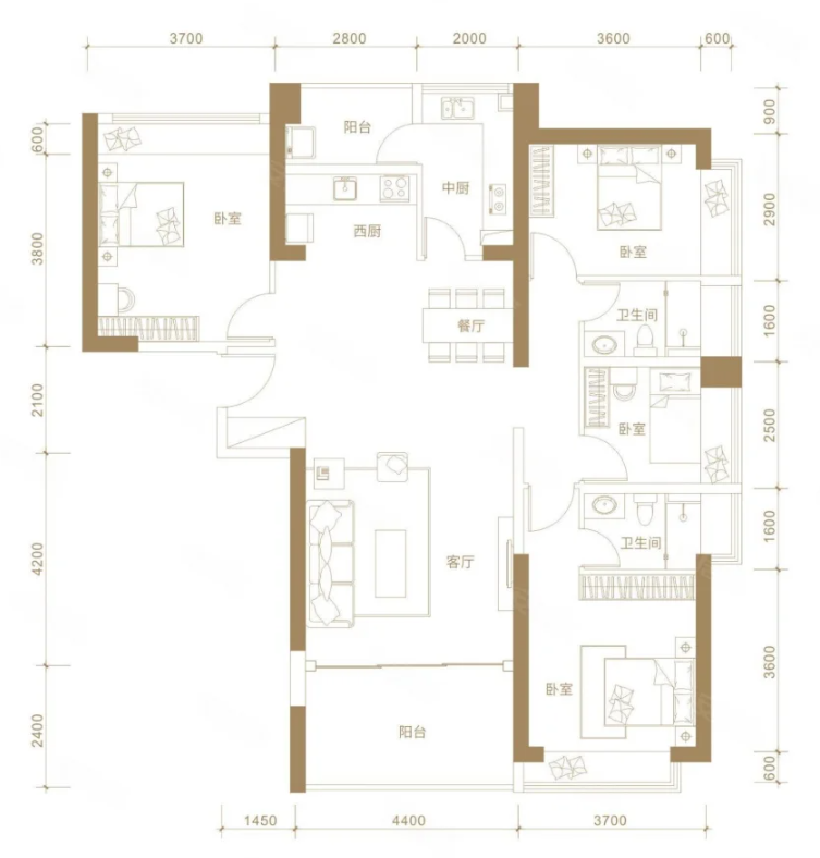 4室2厅2厨1卫 建面158m²