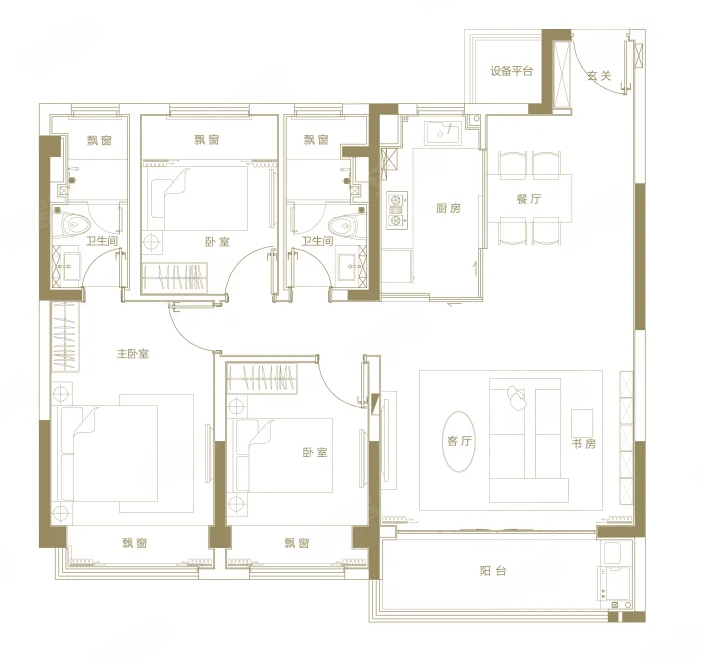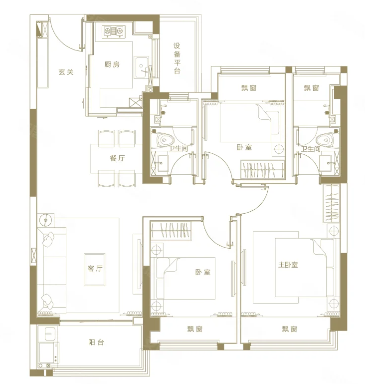 3室2厅2厨1卫 建面123m²