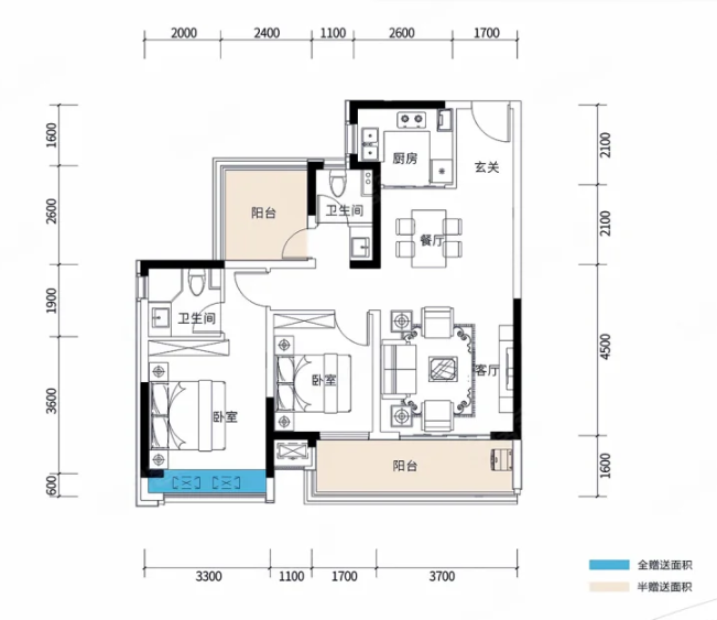 2室2厅2厨1卫 建面95m²