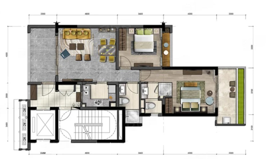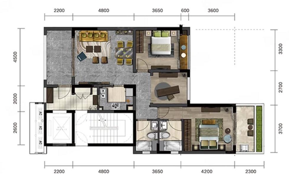 2室2厅2厨1卫 建面81m²