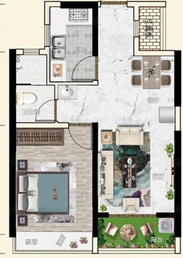 61,户型居室:【1室1厅1厨1卫】,建筑面积:【61平方米】