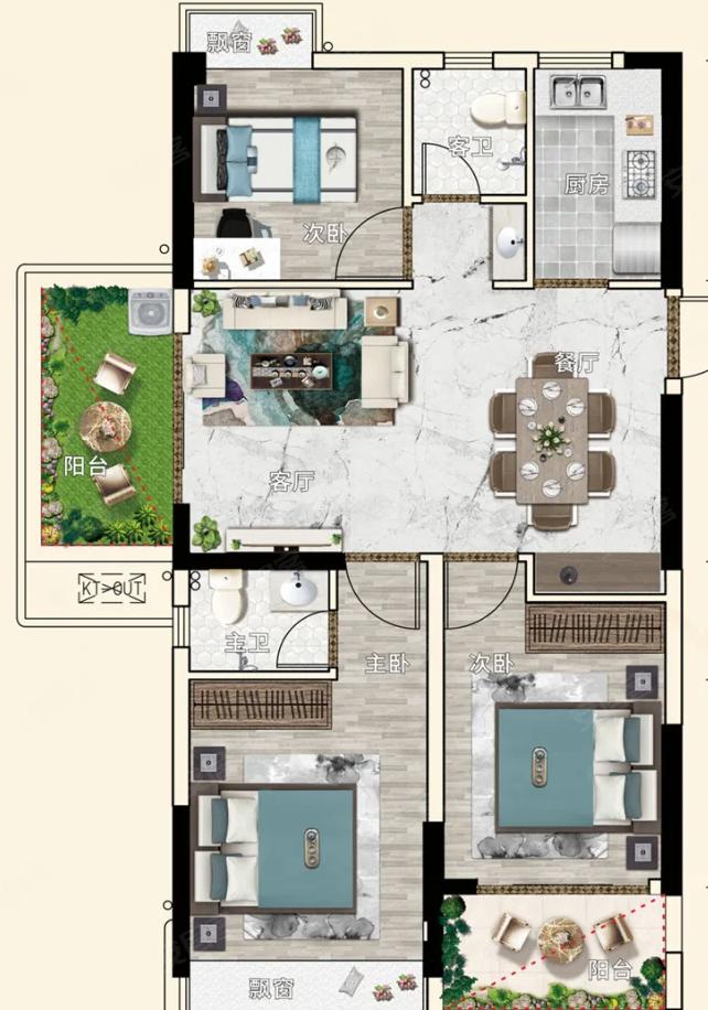 90,户型居室:【3室2厅1厨1卫】,建筑面积:【90平方米】