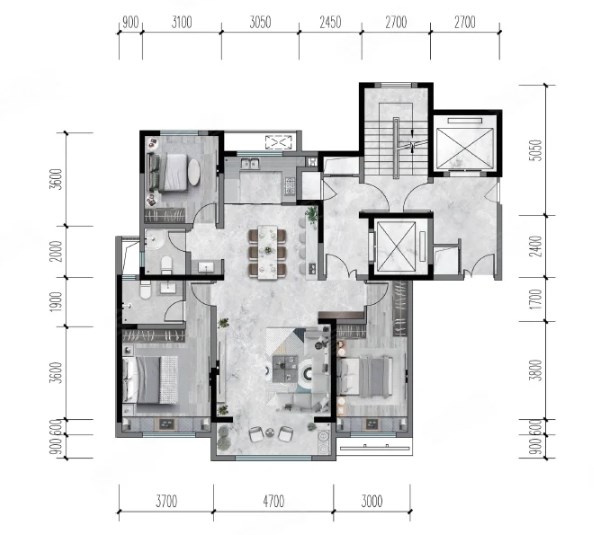 4室2厅3厨1卫 建面224m²
