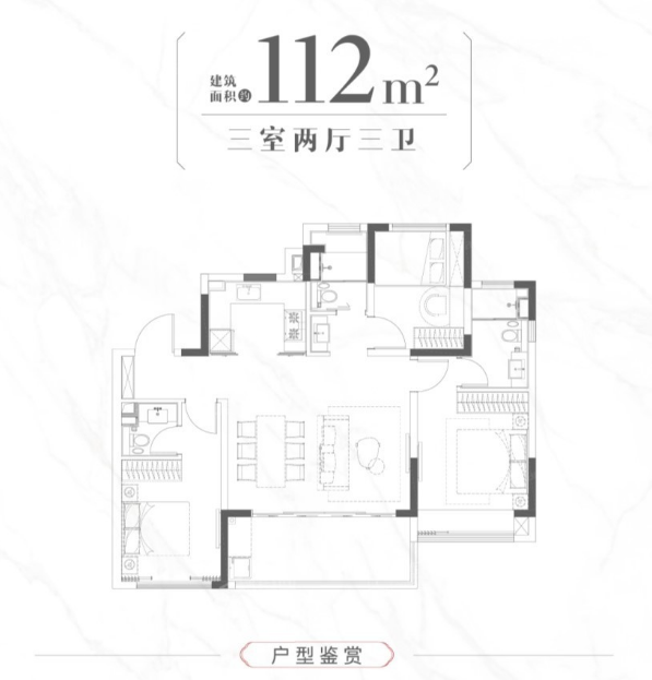 3室2厅2厨1卫 建面112m²