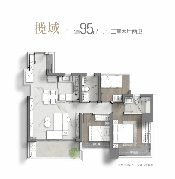 95,户型居室:【3室2厅1厨2卫】,建筑面积:【95平方米】