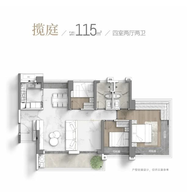 115,户型居室:【4室2厅1厨2卫】,建筑面积:【115平方米】