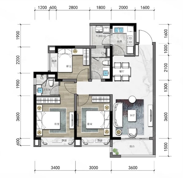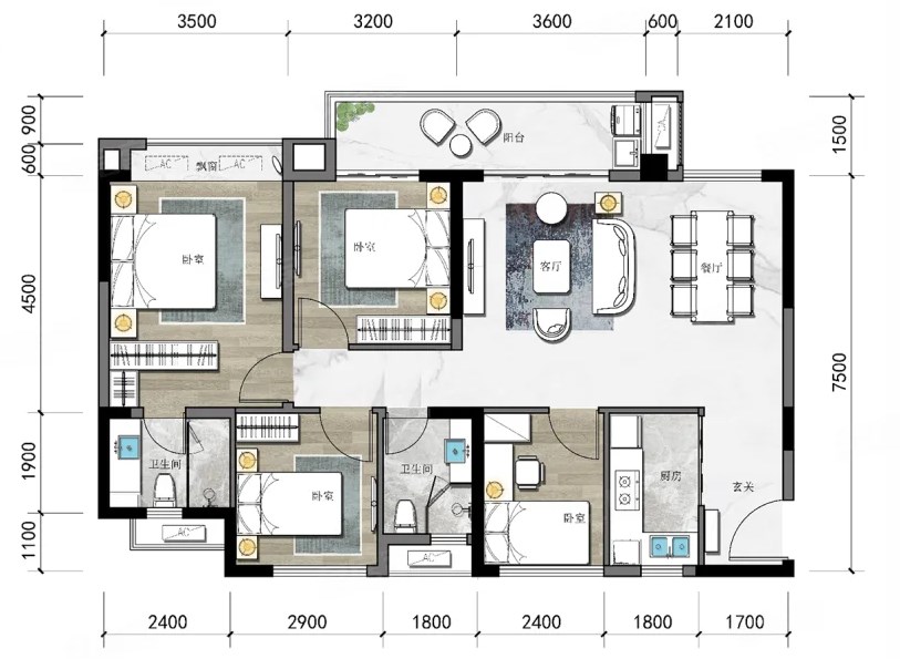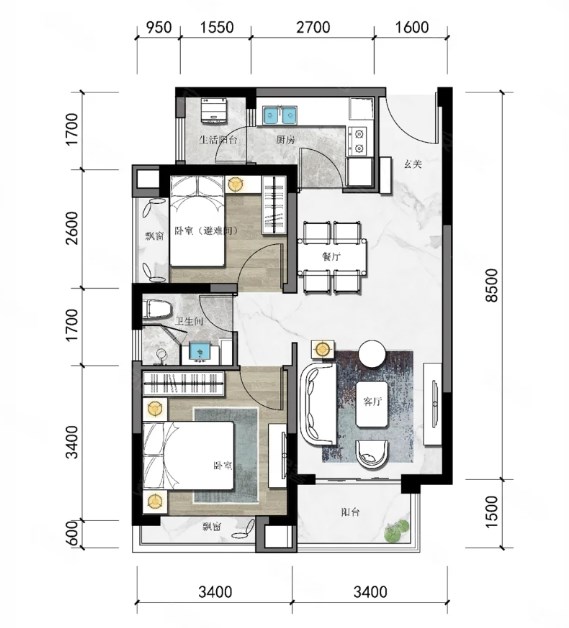 E,户型居室:【3室2厅1厨2卫】,建筑面积:【105平方米】