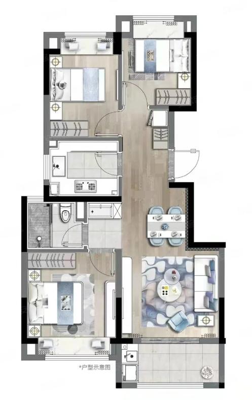 3室2厅1厨1卫 建面92m²
