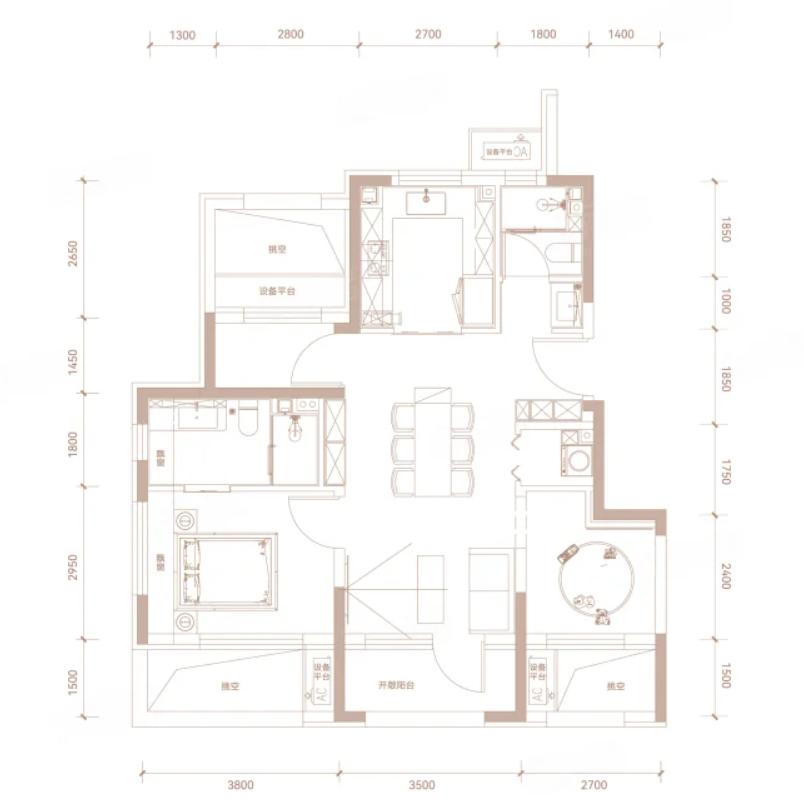2室1厅1厨1卫 建面79m²