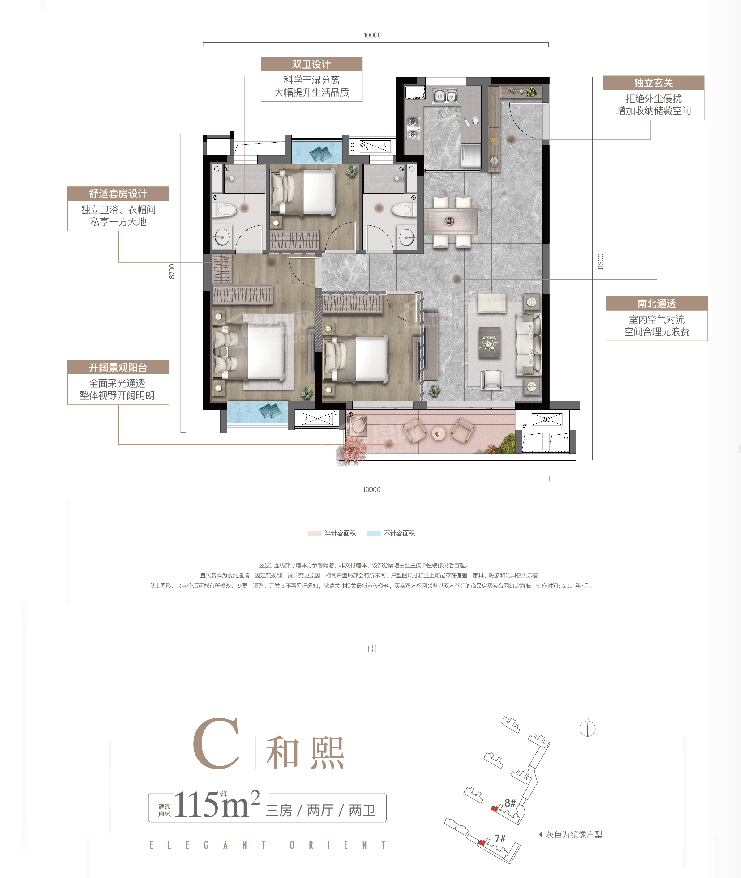 3室2厅2厨1卫 建面115m²