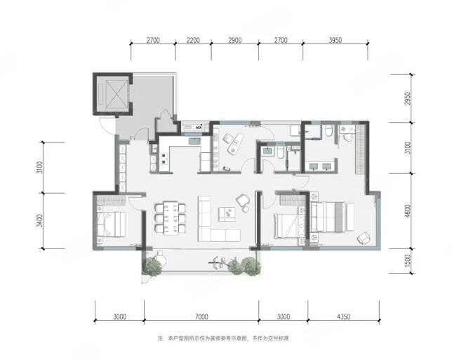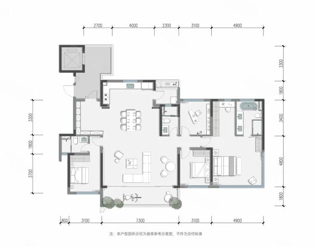 4室2厅3厨1卫 建面170m²