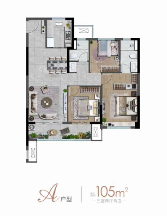 3室2厅2厨1卫 建面105m²
