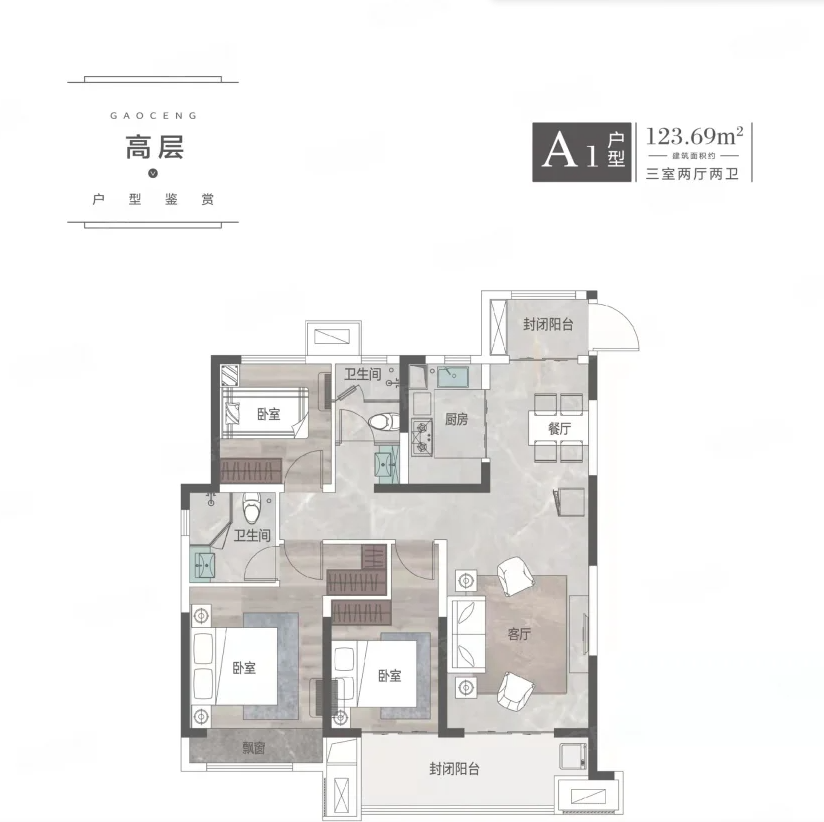 高层A1户型 3室2厅2卫