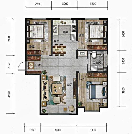 3室2厅2厨1卫 建面120m²