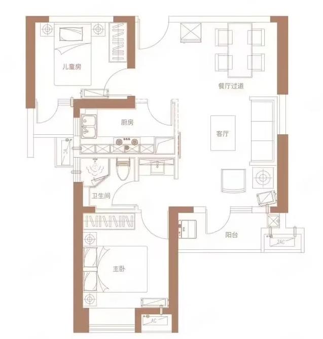 2室2厅1厨1卫 建面79m²