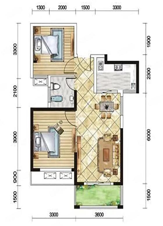 2室2厅1厨1卫 建面82m²