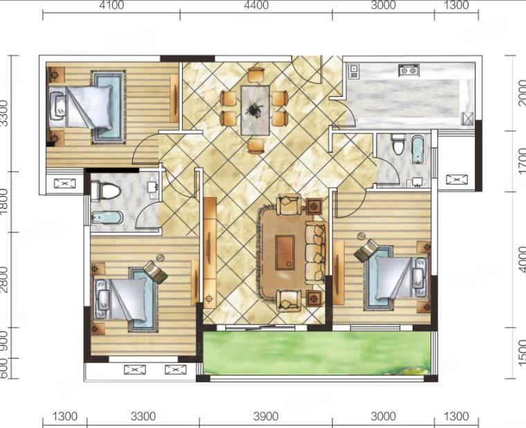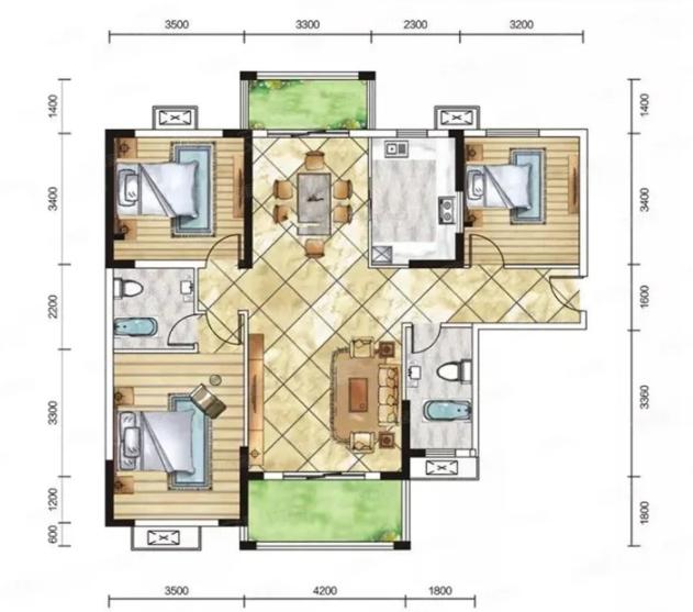 3室2厅2厨1卫 建面130m²