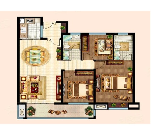 3室2厅2厨1卫 建面120m²