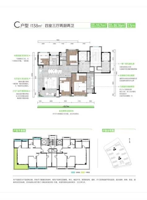 3室3厅2厨1卫 建面138m²