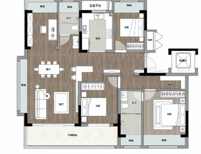 3室2厅2厨1卫 建面116m²