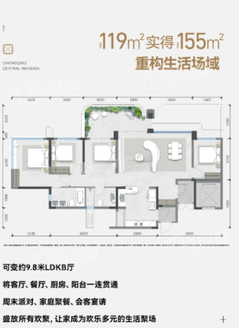 119,户型居室:【4室2厅1厨2卫】,建筑面积:【119平方米】