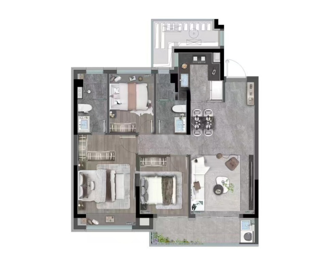 3室2厅2厨1卫 建面101m²