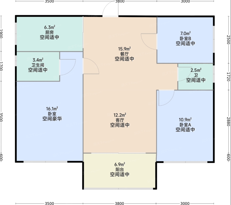 90,户型居室:【3室2厅1厨2卫】,建筑面积:【90平方米】