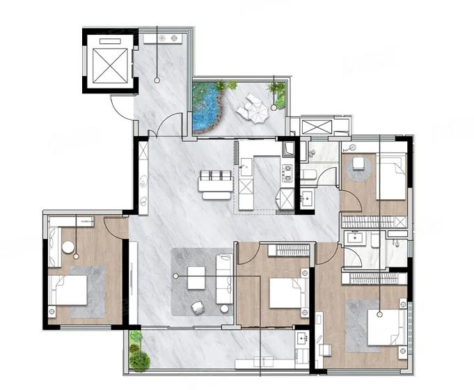 4室2厅2厨1卫 建面172m²