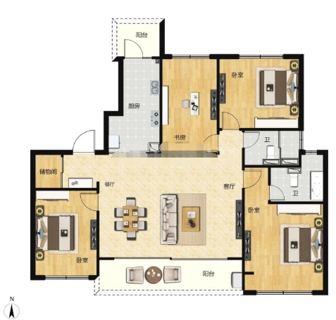 3室2厅2厨1卫 建面122m²
